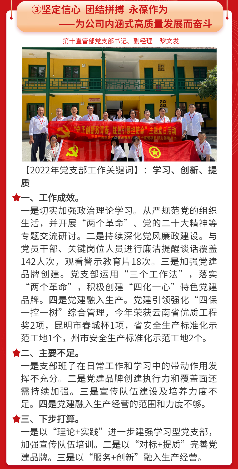 2022年度黨支部書記抓基層黨建工作述職報告摘登(三)